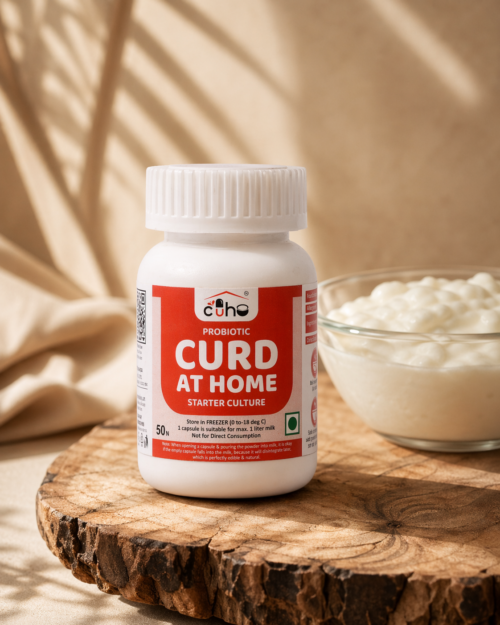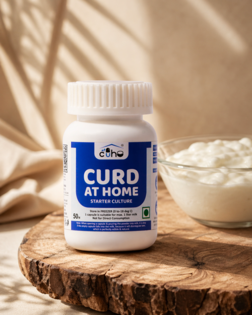 100% Natural & Plant-Based CUHO capsules are made with natural curd cultures and plant-based veg capsules. No preservatives, no chemicals – just pure, healthy curd-making at home.